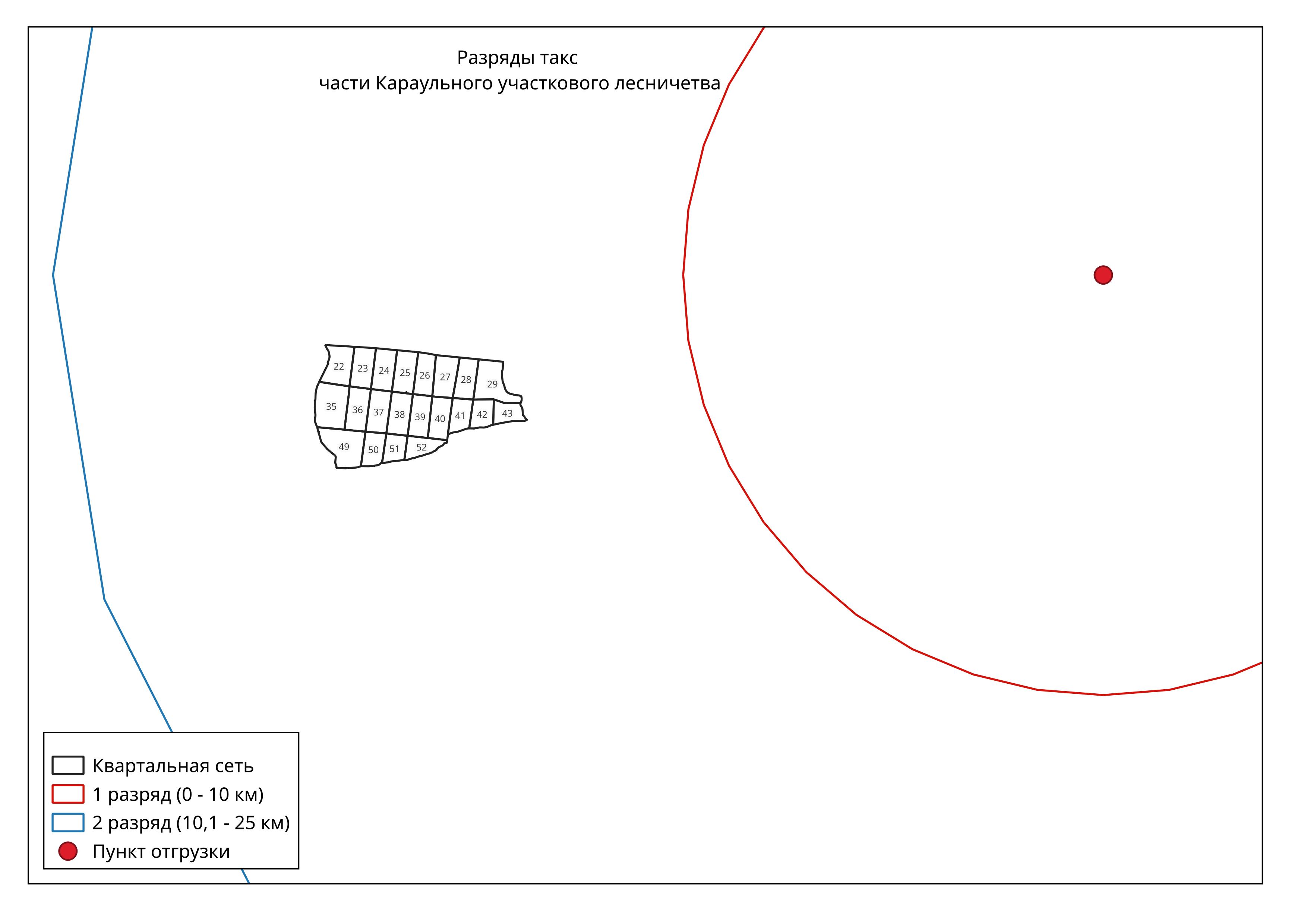 Разряд такс устанавливается для каждого квартала в зависимости от того, в какую зону он попадает, для этого вокруг пункта отгрузки древесины строятся буферные зоны.